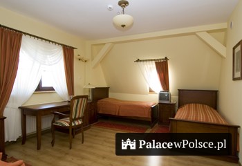 Goście mogą skorzystać z bazy hotelowej zlokalizowanej w "Domu pod Kogutkiem", mieszczącym się nieopodal zamku. Jest to budynek postawiony w 1915 roku w stylu neogotyckim z okrągłą wieżą, na szczycie której umieszczono blaszany wiatrowskaz w kształcie koguta. Renesansowo - klasycystyczny zamek oraz neogotycki "Dom pod Kogutkiem" zlokalizowane są w pięknym parku utrzymanym w stylu angielskim. W Domu pod Kogutkiem znajduje sie jadalnia oraz nowoczesna kuchnia. W zamku jest wydzielony pokój, w którym można spożywać posiłki. Zamek otacza rozległy park z rzadkimi gatunkami drzew
